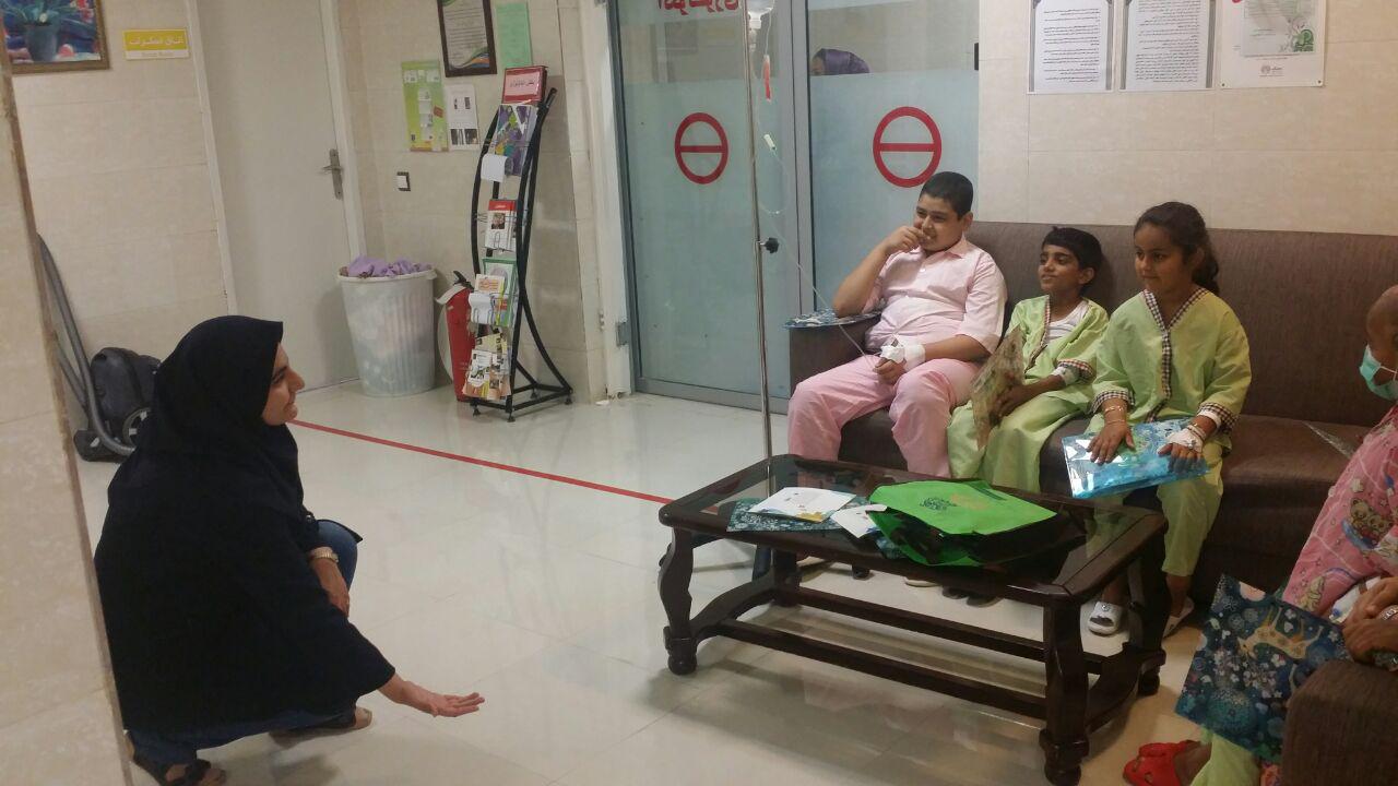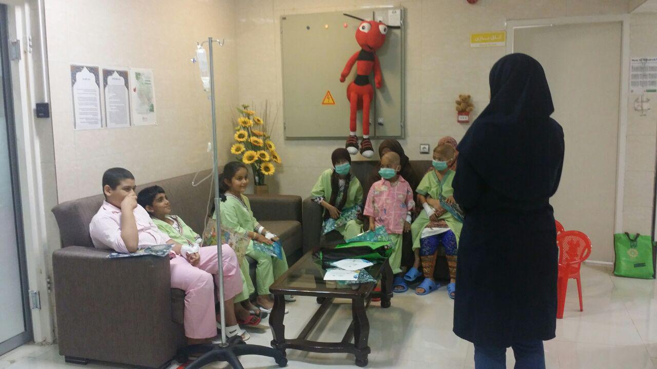 کتابداران کتابخانه شهید مطهری بندرعباس با خواندن کتاب روزی با نشاط را برای کودکان بستری مبتلا به سرطان در بیمارستان این شهر رقم زدند .