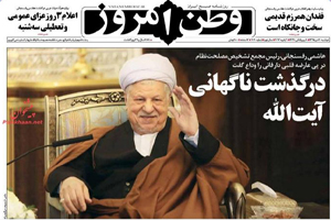 روزنامه وطن امروز با اعلام این مطلب که عارضه قلبی علت فوت رئیس مجمع تشخیص مصلحت نظام بوده است تیتر «درگذشت ناگهانی آیت الله» را منتشر کرد و کیهان با انتشار بخشی از متن پیام رهبری مبنی بر اینکه «هوش وافر و صمیمیت کم نظیر او تکیه گاه مطمئنی برای همه به ویژه اینجانب بود» نوشته است: «آیت الله هاشمی رفسنجانی دعوت حق را لبیک گفت».