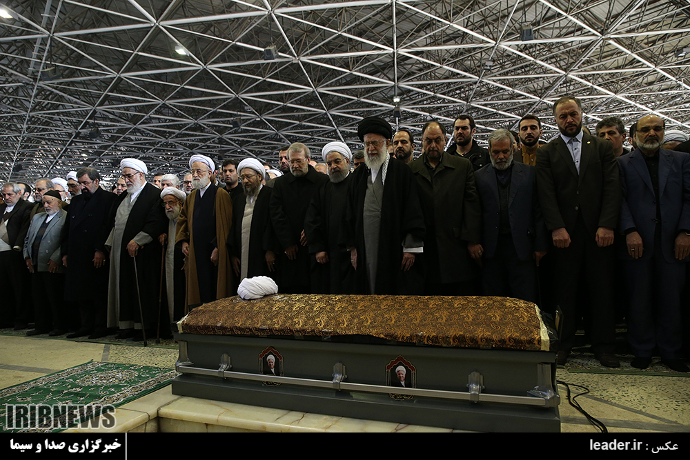 اقامه نماز بر پیکر مرحوم آیت الله هاشمی رفسنجانی توسط رهبر معظم انقلاب