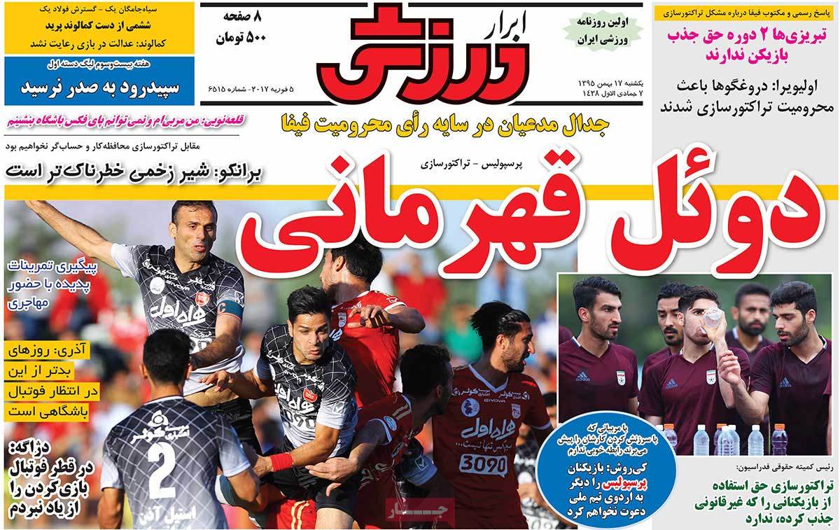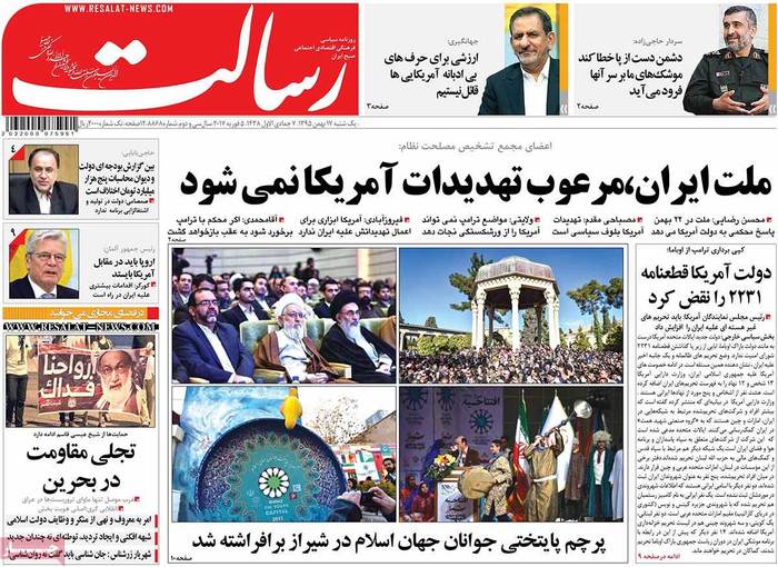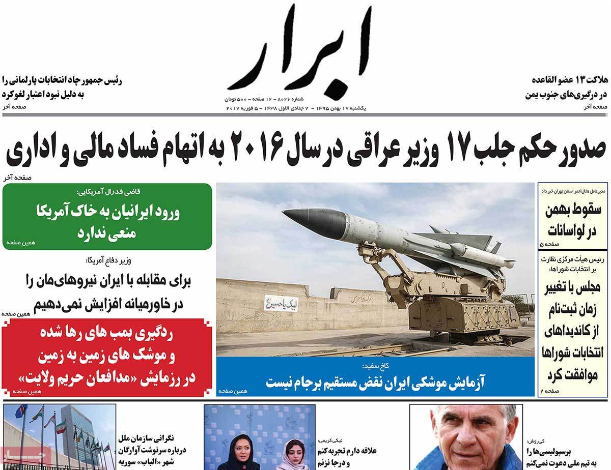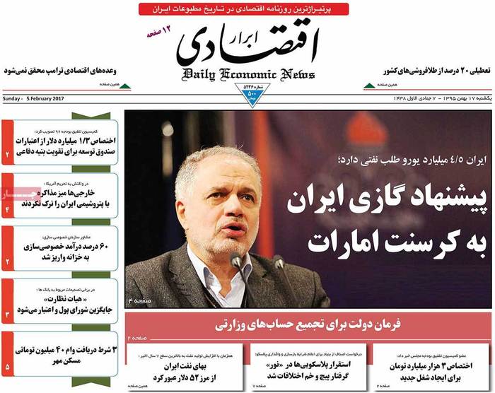 عناوین مطبوعات یکشنبه ۱۷ بهمن ۹۵