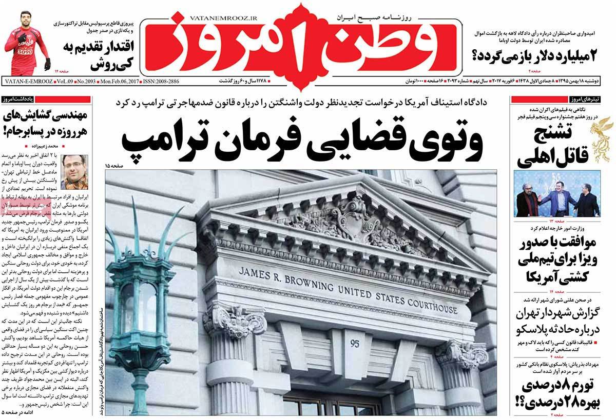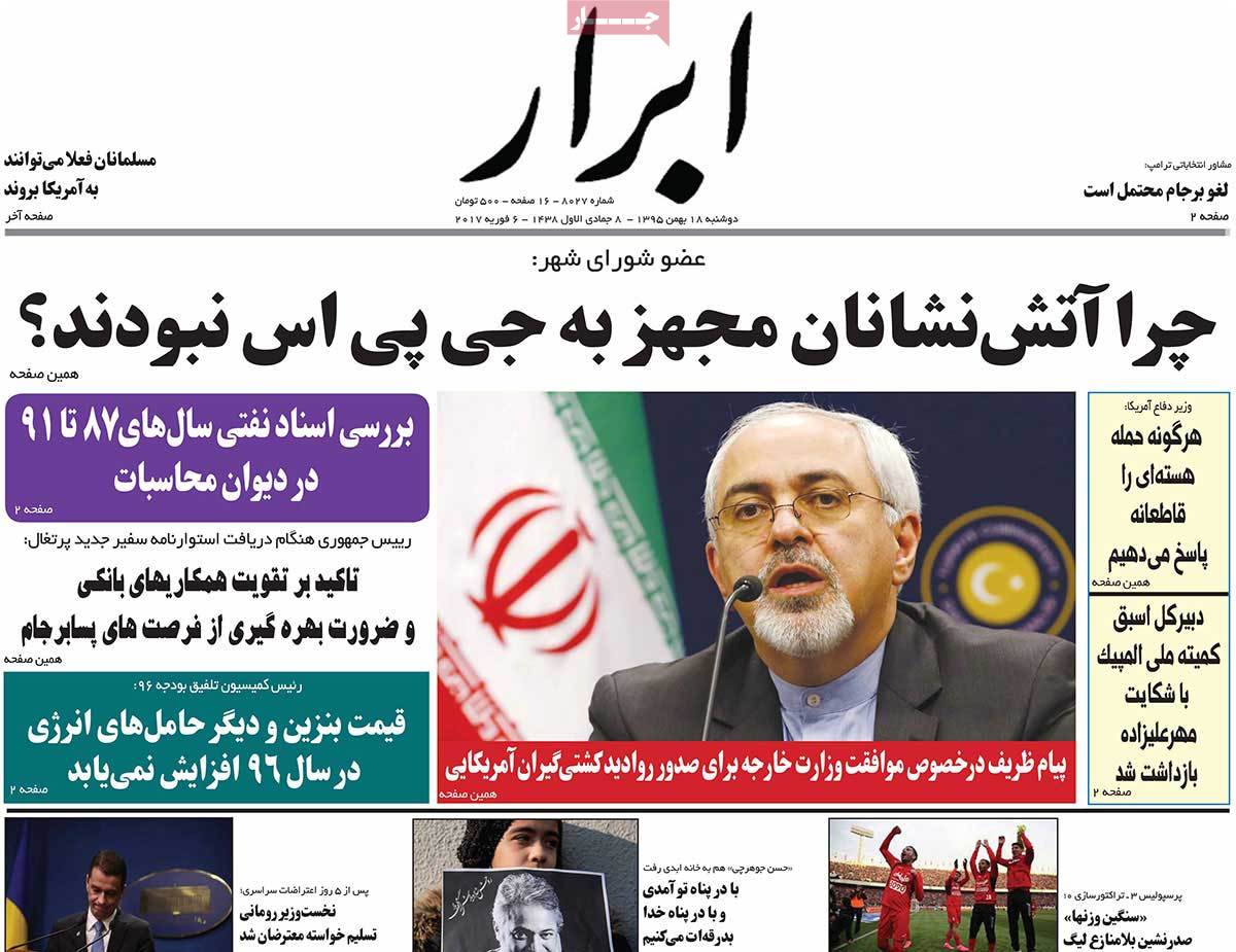 عناوین مطبوعات دوشنبه ۱۸ بهمن ۹۵