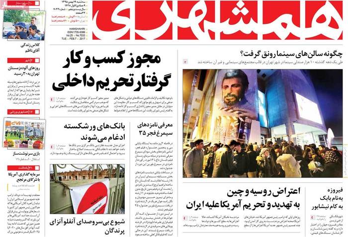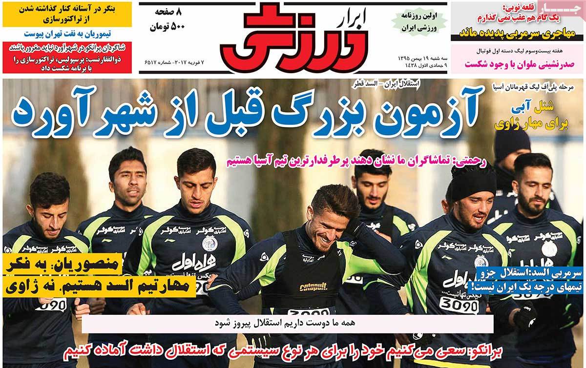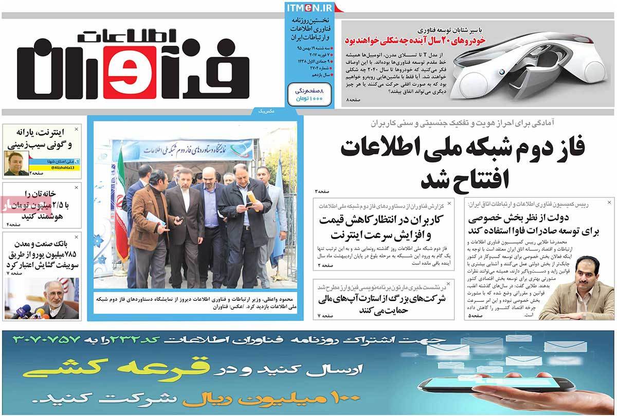عناوین مطبوعات سه شنبه ۱۹ بهمن ۹۵