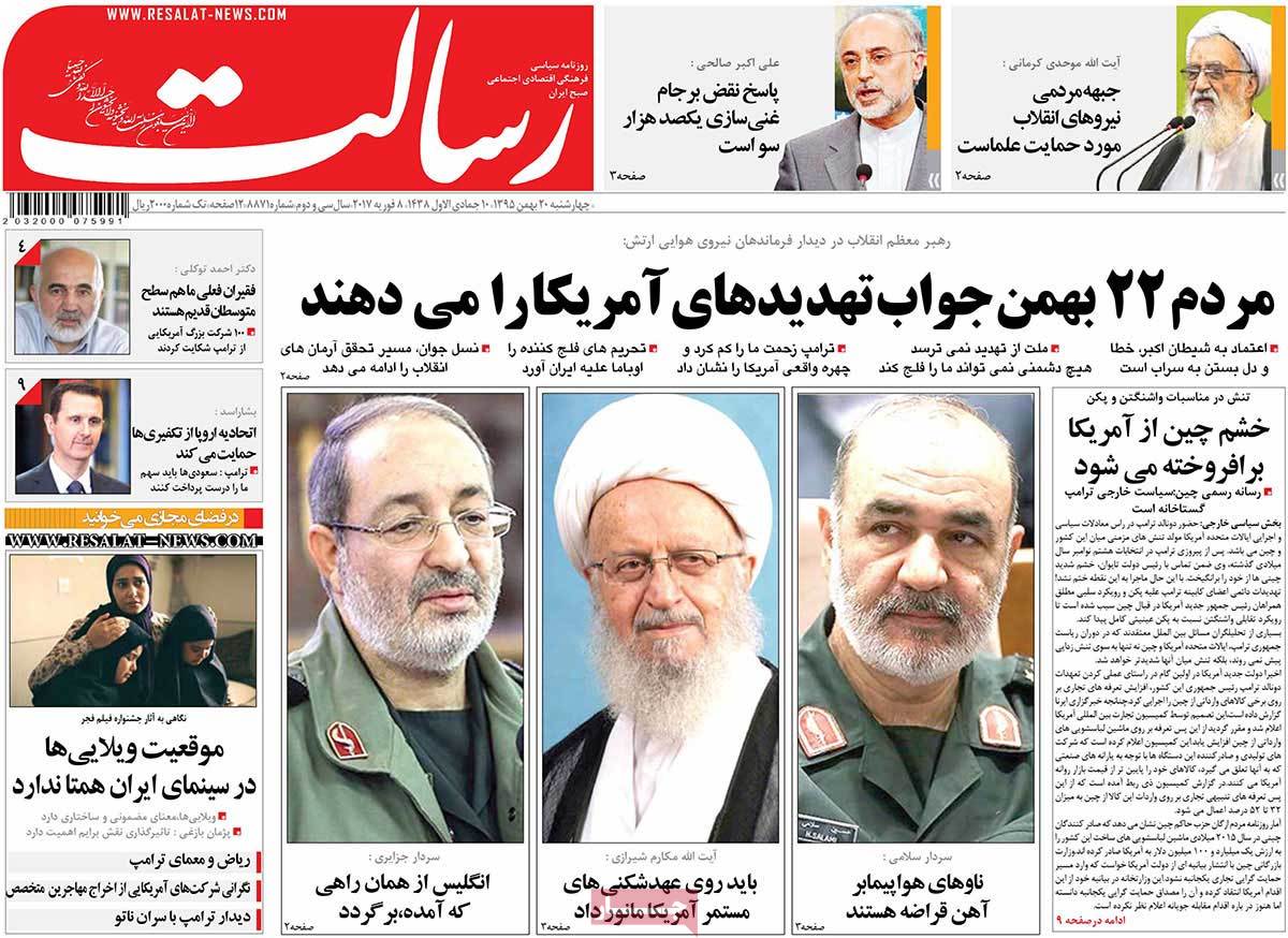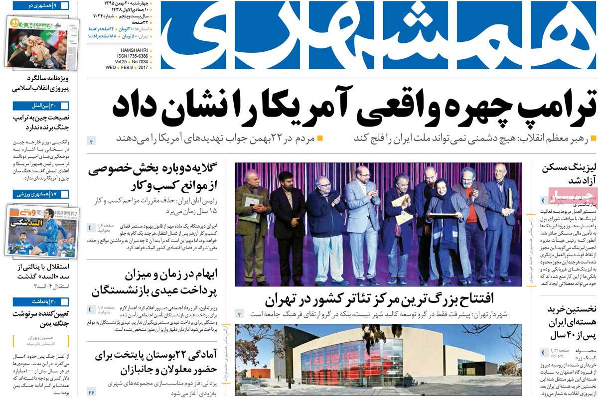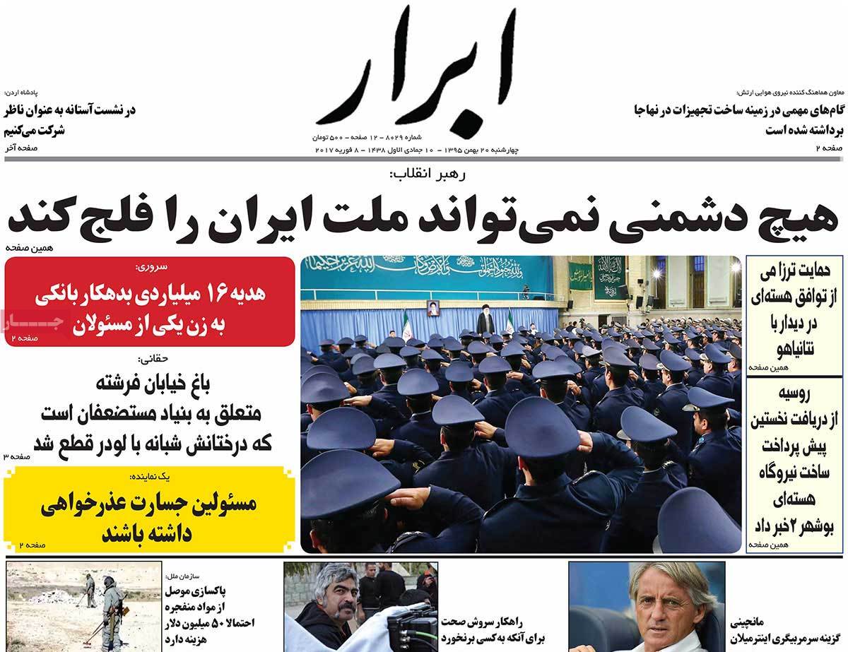 عناوین مطبوعات چهارشنبه ۲۰ بهمن ۹۵