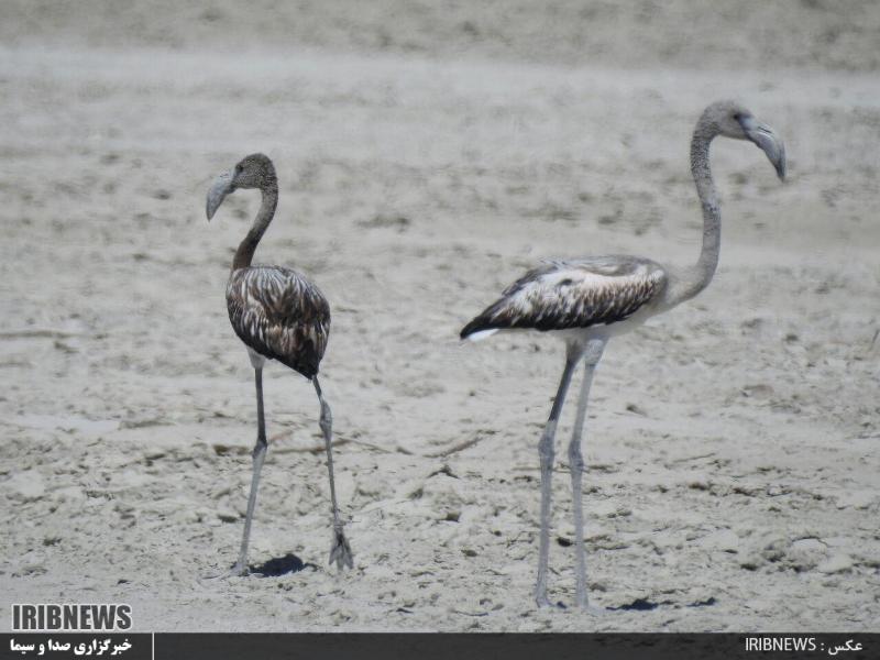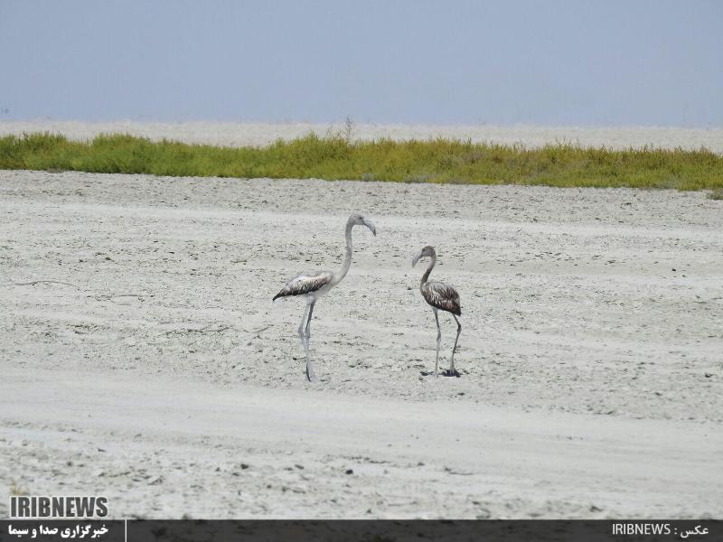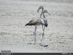 سرگردانی جوجه فلامینگو‌ها در تالاب خشکیده بختگان
