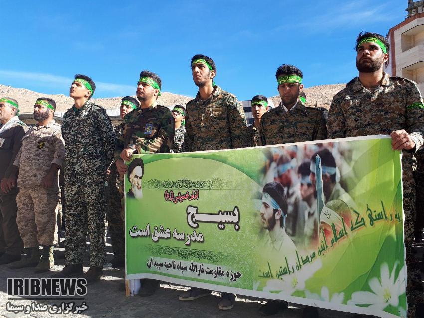 همچنین در حرکتی نمادین بسیجیان با سابقه پرچم‌شان را به نوجوانان و جوانان بسیجی تقدیم کردند.