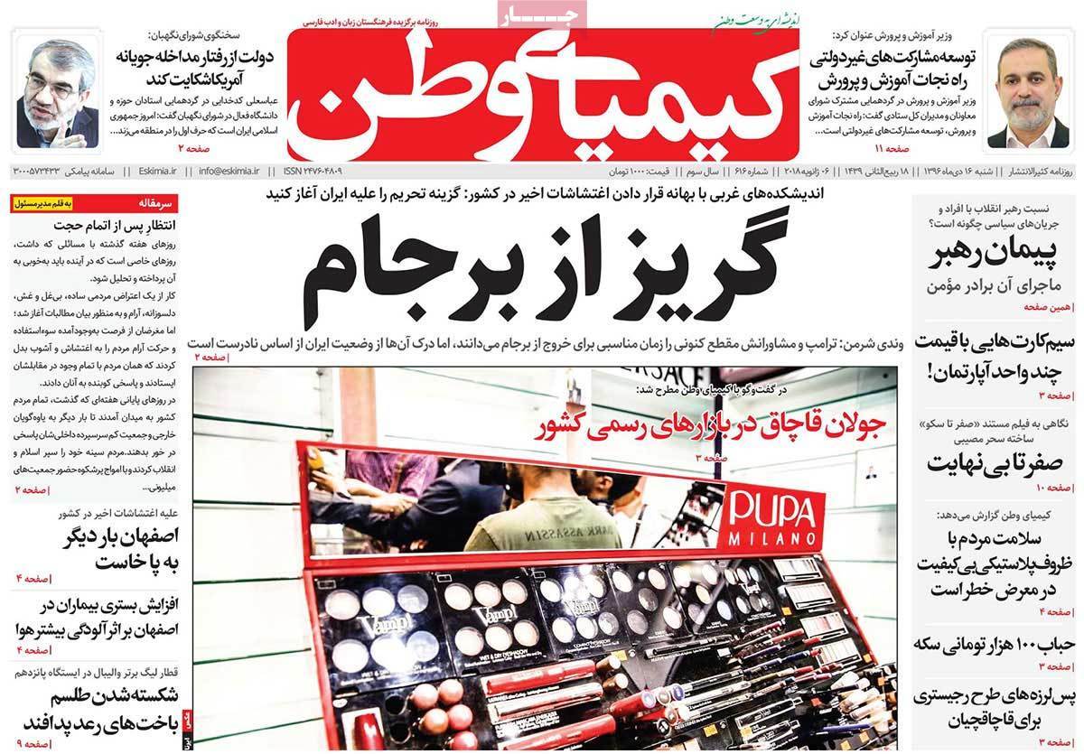 روزنامه های امروز اصفهان ،از تدابیر دولت ،ملت و حتی آمریکا در اغتشاشات اخیر تیتر زده اند.
