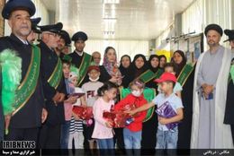 عیادت خدام حرم مطهر سید علاءالدین حسین (ع) از بیماران سرطانی