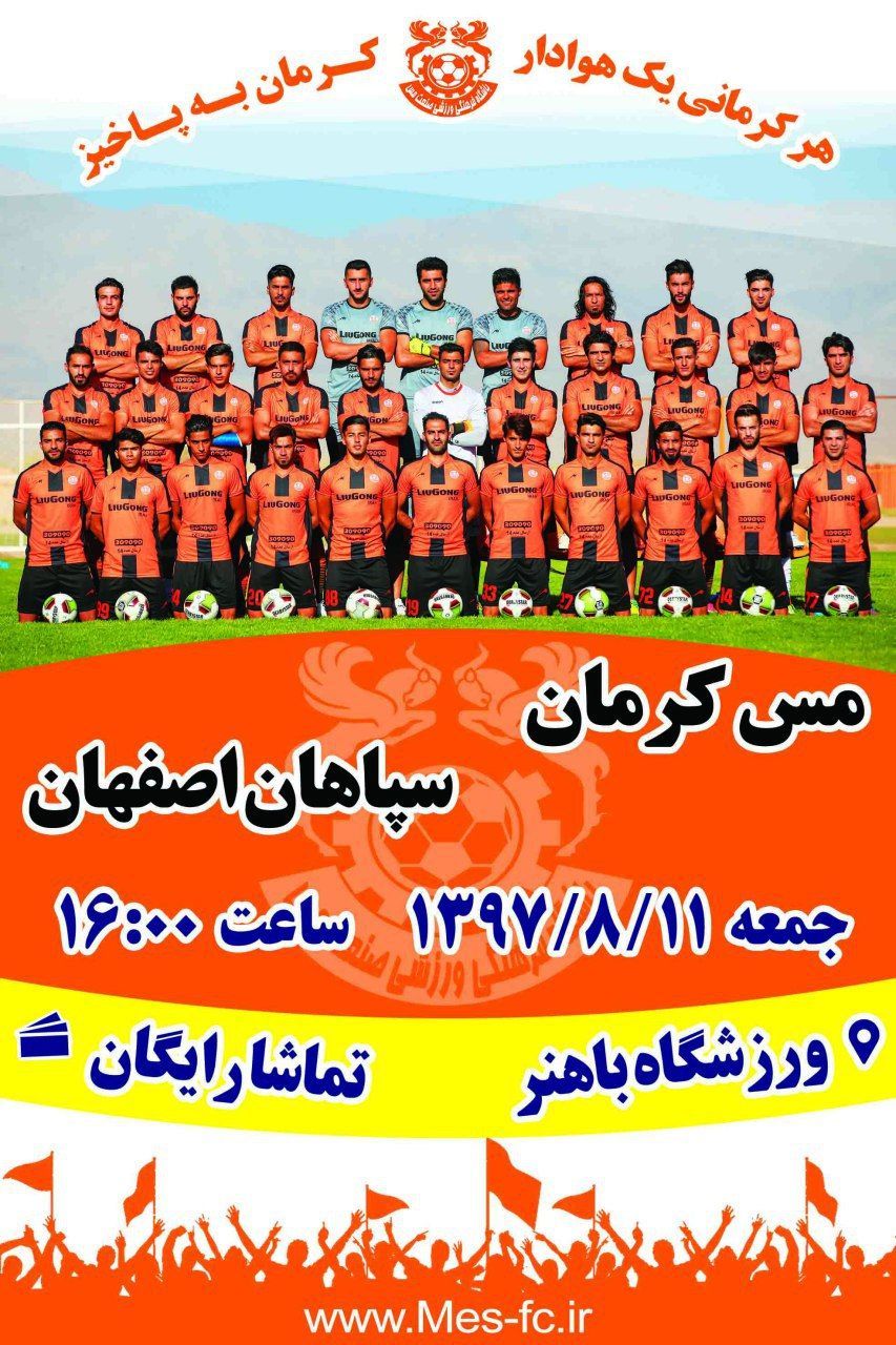 دیدار حساس و سرنوشت ساز تیم های فوتبال صنعت مس کرمان و سپاهان اصفهان ، عصر امروز در ورزشگاه شهید باهنر کرمان برگزار می شود.