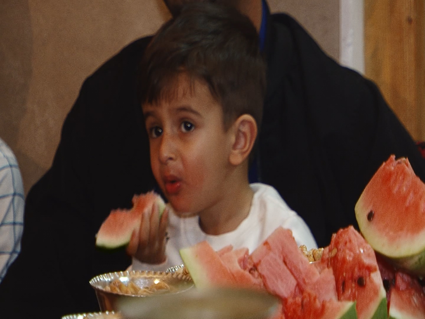 با تعارف عصمت خانم برای شب ماندیم ...دم دم های غروب بود که بچه ها آمدند ابتدا کمک مادر بساط سفره یلدا را چیدند ،و بعد سماور زغالی را آوردند و چای دم گذاشتند شاید بیشتر از 50نفر شدند و مادر به عنوان بزرگ فامیل بالای کرسی نشست و دو فرزند اش در دو طرف مادر نشستند.
