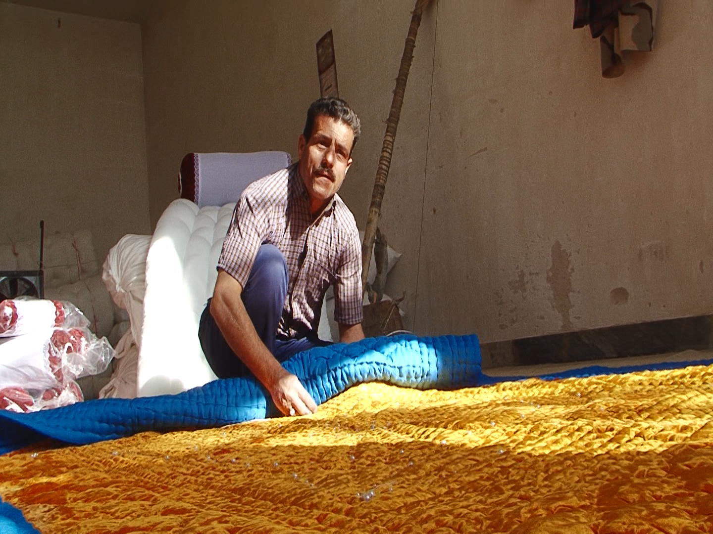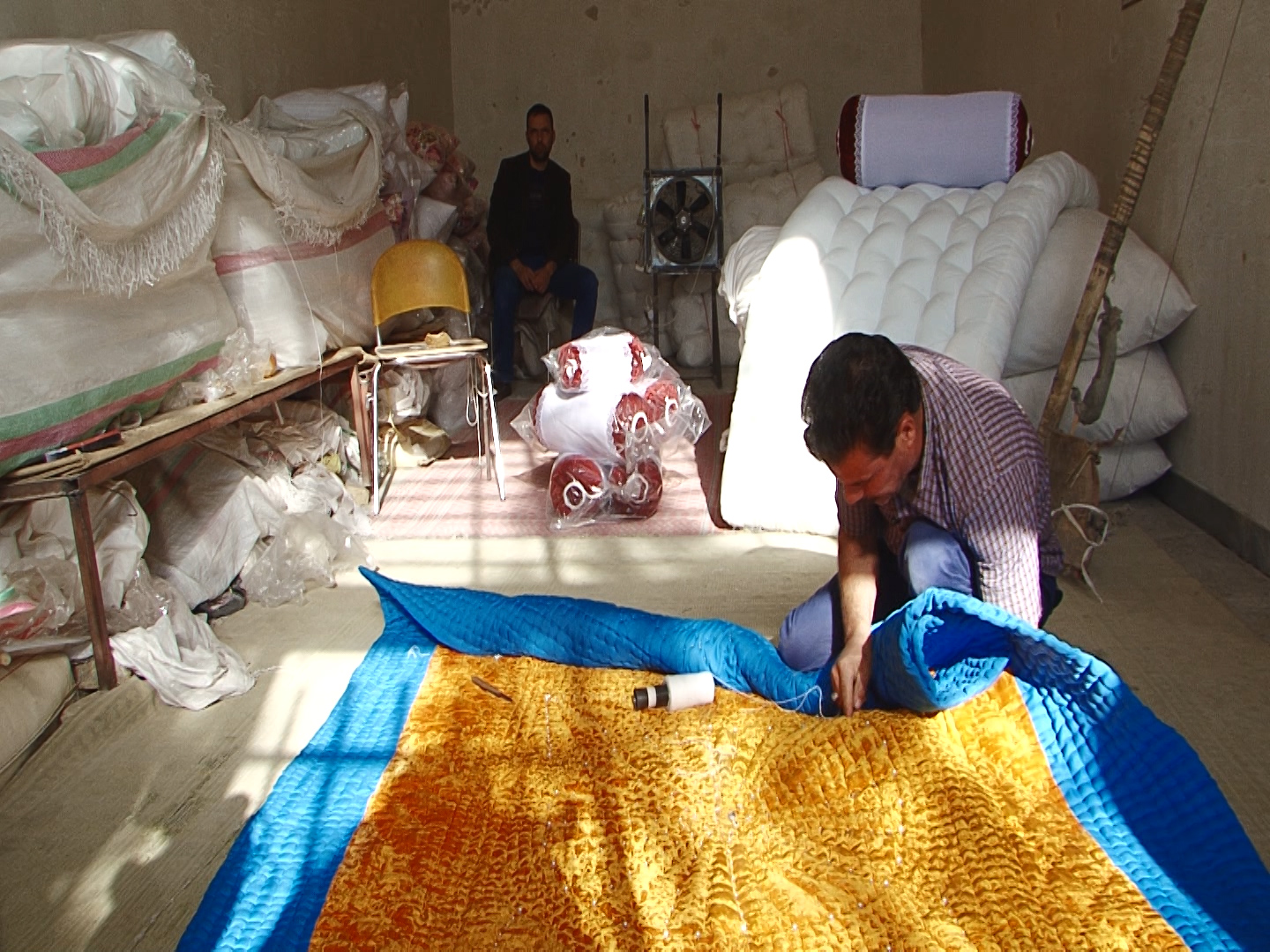چند مغازه پایین تر آقا رضا هم داشت لحاف کرسی می دوخت، آقا رضا هم که معتقد بود زمستان ها کسب کارش بهتر است گفت:«لحاف کرسی سه متر و نیم در سه متر نیم است و 120سانتی متر هم از کنار کرسی رها می شود تا افراد بتوانند بهتر از آن استفاده کنند».
