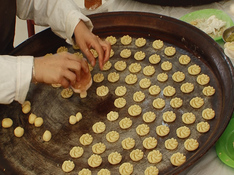 بوی عطر شیرینی برنجی ما را به یک کارگاه شیرینی پزی رساند جای که 10تا15 بانو داشتند شیرینی محلی نایینی برای شب یلدا آمده می کردند.مسوول کارگاه گفت:«کپچو بدون افزودنی و مواد نگهدارنده و همچنین با کمترین میزان شیرینی و قند تهیه می شود برای همین متقاضیان زیادی دارد.»