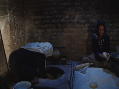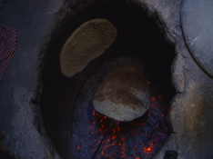 به ما گفتند در برخی از خانوادهها هم در جایی که می خواستند کرسی را برپا کنند چاله میکندند تا علاوه بر پخت نان از آتش آن هم برای گرمای کرسی استفاده کنند بعد با همراهی مردم محل به خانه عصمت خانم رفتیم، بوی خوش نان محلی می آمد ما را به مطبح برد و گفت:«برای شب مهمان دارم»، و با خنده ادامه داد:«مادر من 8 تا دختر دو تا پسر دارم، 30سال شب یلدا به خانه من می آیند من هم دارم نان تازه می پزم» و بعد اشاره ای به دیزی سفالی کرد و گفت :«برای شام هم آش جو بار گذاشته ام که با جو پوست کنده ،شلغم و گوشت پخته می شود.»