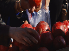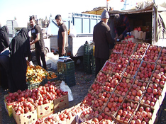 جلوتر دیدم انار می فروشند، انار های قرمز شهرضا بود که فروشنده می گفت:«انار قرمز را فقط مخصوص شب یلدا می آوریم»، بگذاریم که قیمت بالای آن سبب شده بود بجای خرید بسته ای مردم کیلویی خرید کنند.