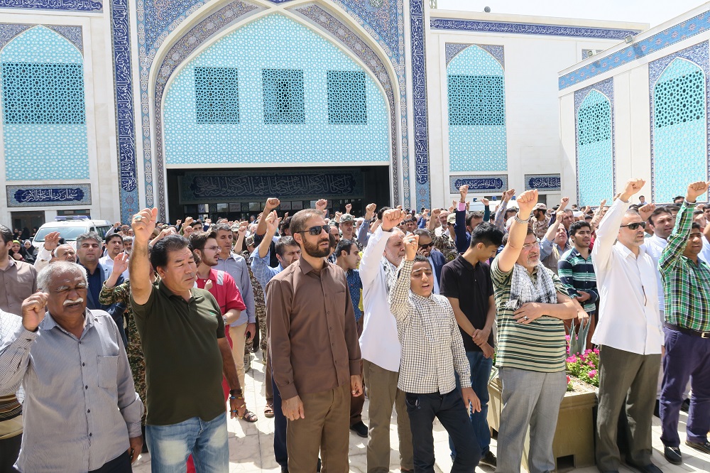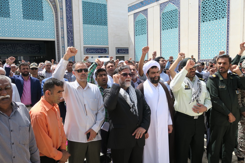 نمازگزاران کیش پس از خطبههای نماز جمعه و اقامه نماز با تجمع در محوطه مصلی فریاد مرگ بر امریکا سردادند و اقدام آمریکا عليه سپاه پاسداران را محكوم كردند.