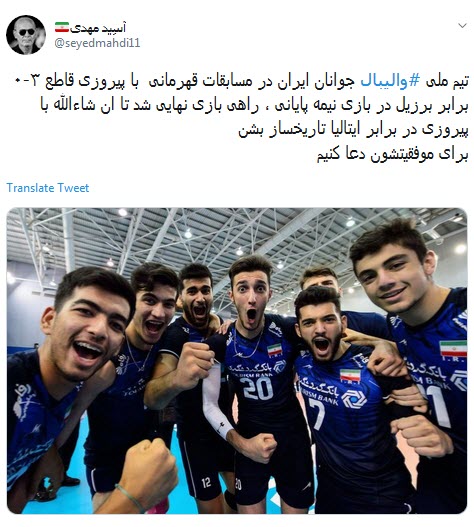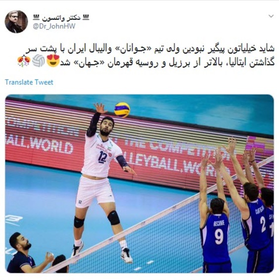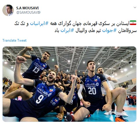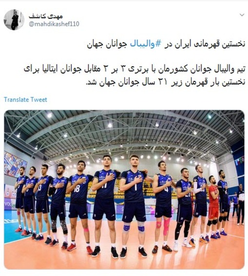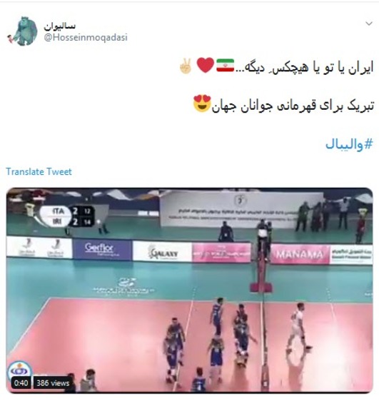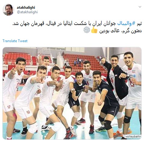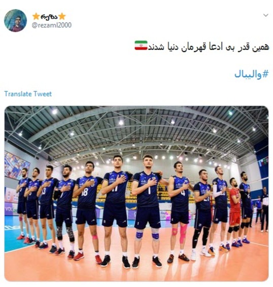 قهرمانی غرورآفرین سروقامتان تیم ملی والیبال جوانان در رقابت‌های جهانی، با خوشحالی و شادی کاربران فضای مجازی همراه شد و با هشتگ # قهرمان در صفحه توئیتر به والیبالیستها تبریک گفتند.