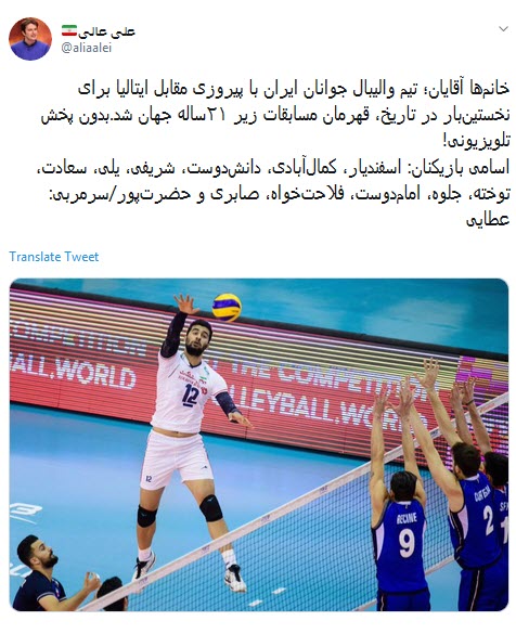 به گزارش سرویس فضای مجازی خبرگزاری صدا و سیما ، تیم ملی والیبال جوانان ایران موفق شد در بازی فینال رقابت‌های قهرمانی جهان ۲۰۱۹ مقابل ایتالیا به پیروزی ۳ بر ۲ برسد و برای اولین بار عنوان قهرمانی جهان را به دست آورد تا بازیکنان ایران در جمع برترین‌های این رقابت‌ها قرار گیرند.