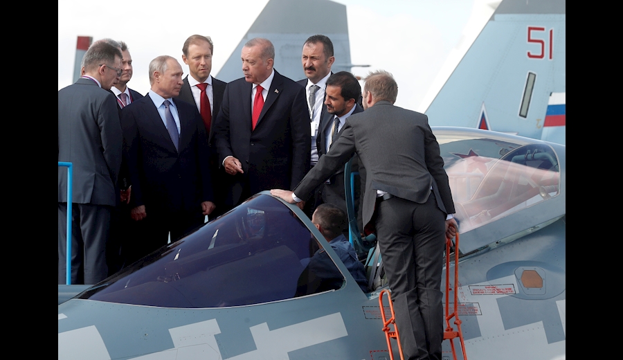 به گزارش سرويس بين الملل خبرگزاری صداوسیما، به نقل از شبکه تلویزیونی الجزیره، ولادیمیر پوتین در چهاردهمین «نمایشگاه ماکس 2019 روسیه» در شهر زوکوفسکی و در نشست خبری مشترک با رجب طیب اردوغان رئیس جمهور ترکیه گفت: این نمایشگاه, راههای متعددی را به روی ما برای مبادله صنایع دفاعی بین ترکیه و روسیه باز خواهد کرد و از توجه و اهتمام ترکیه و نیز اهتمام بین المللی به صنایع دفاعی روسیه به خصوص در این نمایشگاه سپاسگزاری می کنم.