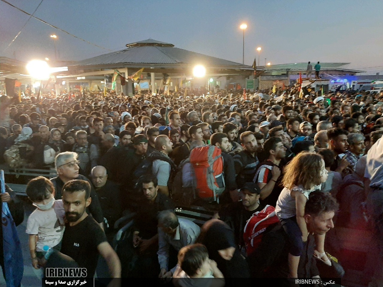 حضور جمعیت زائران اربعین حسینی در پایانه مرزی مهران با ازدحام با شکوهی روبروست.