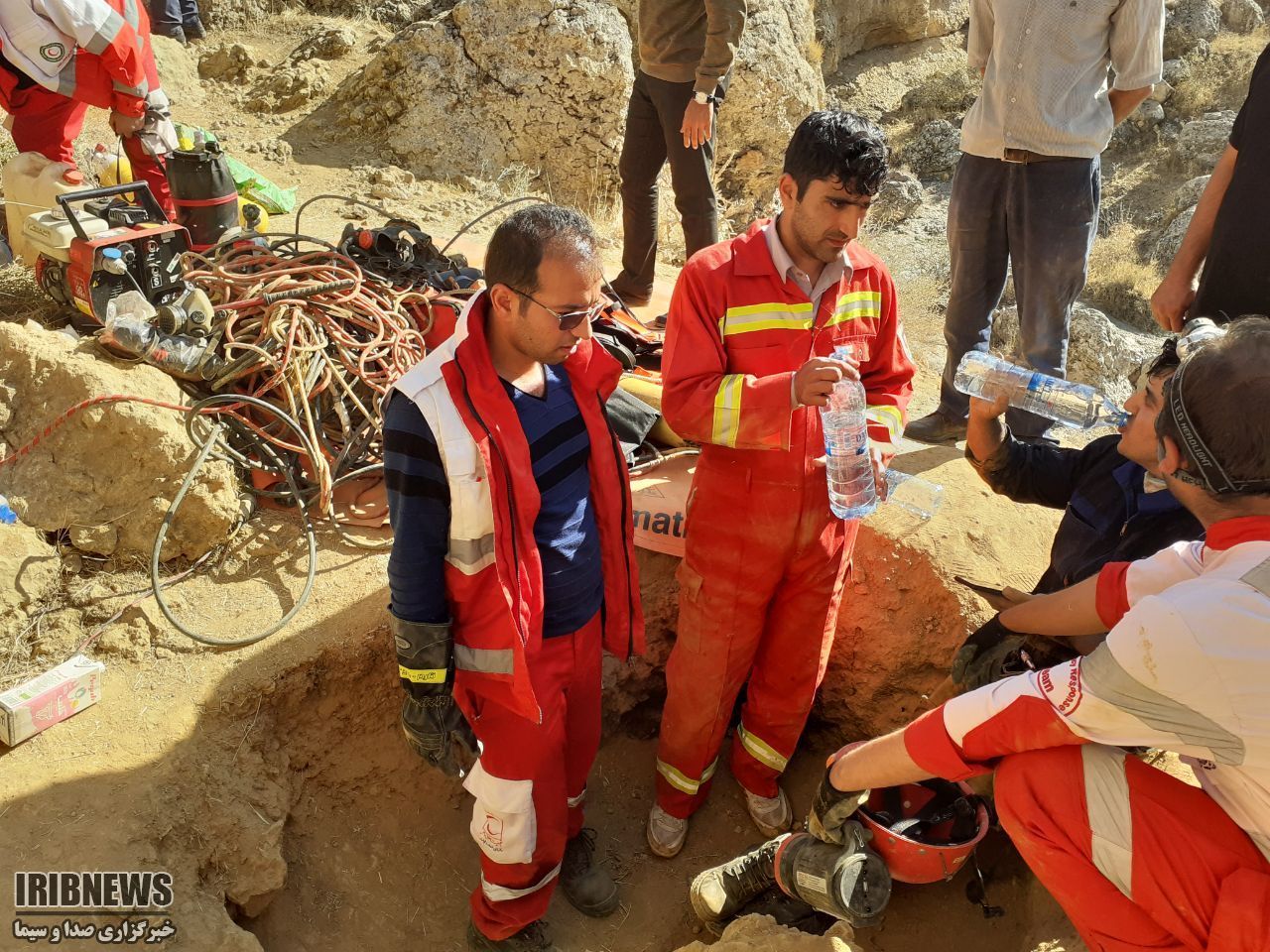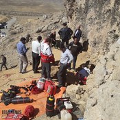 جسد جوینده گنج بعد از دو روز تلاش امدادگران جمعیت هلال احمر از اعماق 50 متری غار عسکر آباد خوی بیرون کشیده شد.