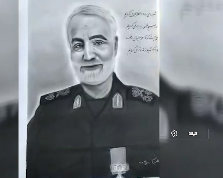 هنرمند 23 ساله جوان اهل بخش میمه چهره شهید حاج قاسم سلیمانی را طراحی کرد.