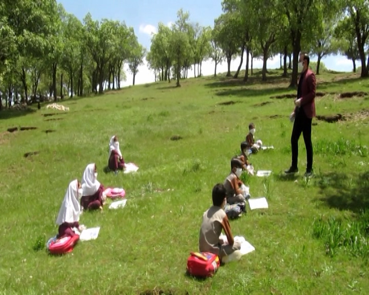 در شرایط کرونایی معلم فلاردی برای آموزش دانش آموزانش طرح فاصله گذاری اجتماعی را اجرا میکند.
