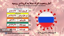 ستاد عملیاتی مقابله با ویروس کرونا در وزارت بهداشت روسیه با ابراز نگرانی از ادامه این روند اعلام کرد: در شبانه روز گذشته ۸ هزار و ۷۰۶ نفر دیگر به ویروس کرونا مبتلا شدند و تعداد کل مبتلایان به ۵۲۰ هزار و ۱۲۹ نفر رسید.
