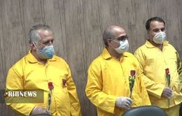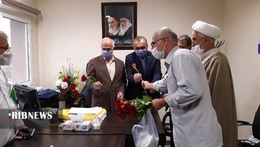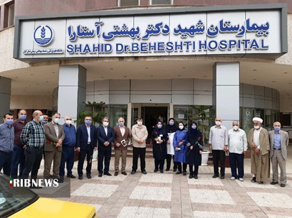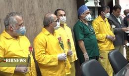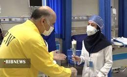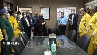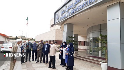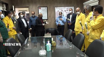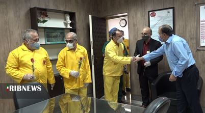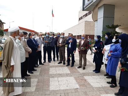 جمعی از آزادگان گیلانی در حرکتی نمادین به دیدار کادر درمان بیمارستان رازی رشت رفته و به پاس زحماتشان به آنان شاخه گل هدیه دادند.
