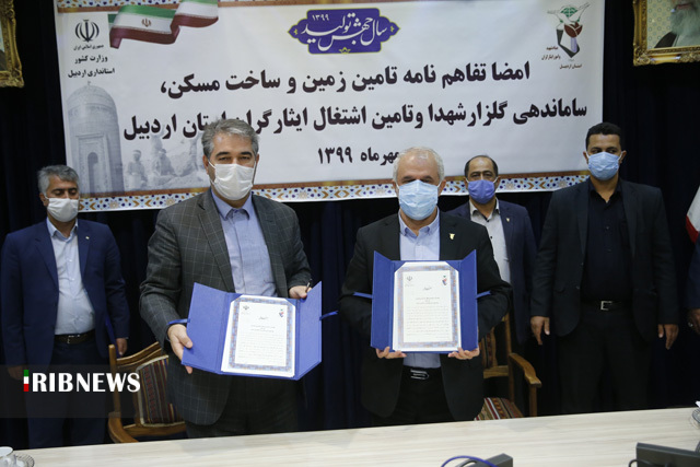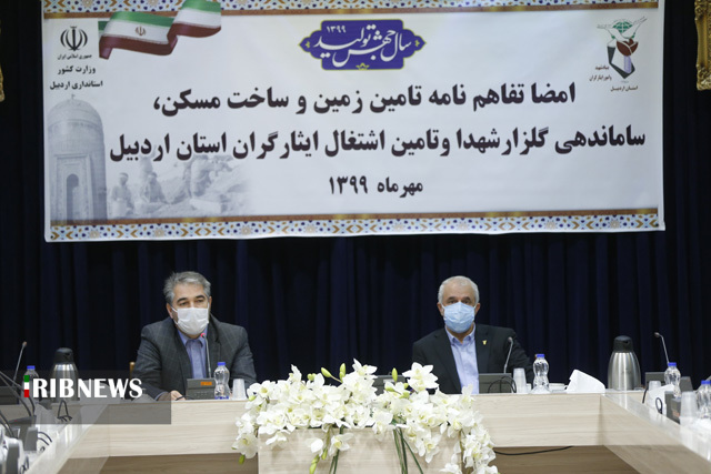تفاهم نامههای تامین زمین برای ساخت ۱۵۰۰ واحدمسکونی، ایجاد ۱۵۰۰ شغل برای خانوادههای معظم شهدا وایثارگران همچنین ساماندهی مزار متبرک ۶۵۰ شهید استان اردبیل به امضا رسید.