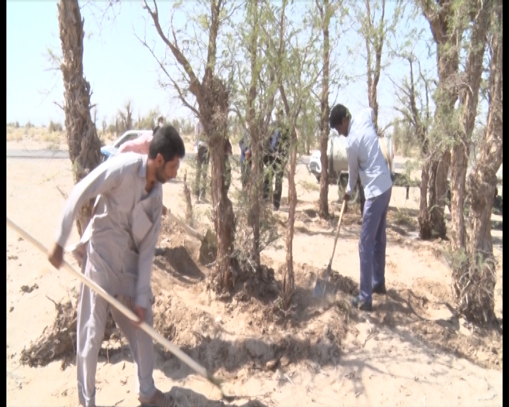 دهیاری روستای سلطان آباد شهرستان ریگان برای جلوگیری از خشک شدن درختان کهور؛ با همکاری اهالی روستا اقدام به آبیاری دستی این درختان کرده است.