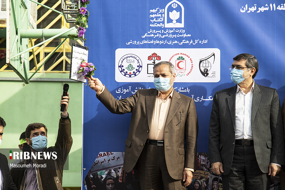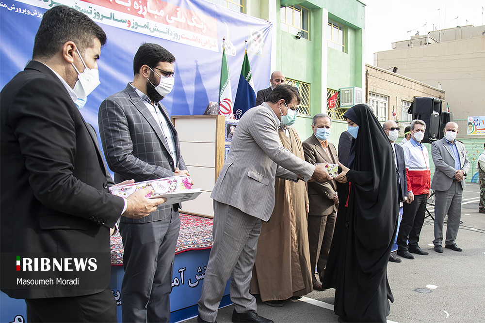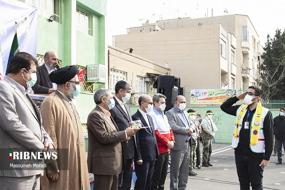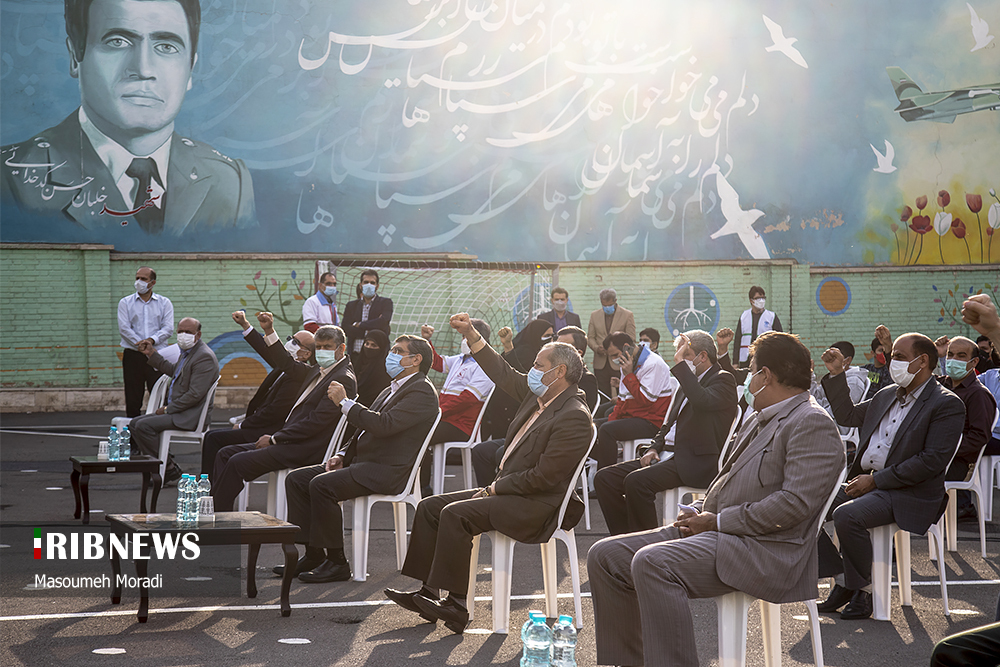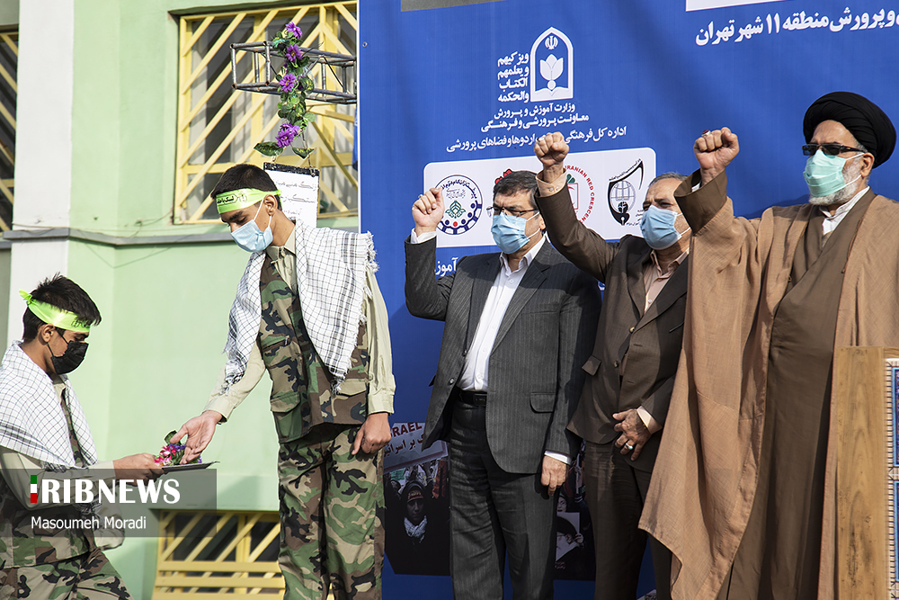 مراسم نمادین نواختن زنگ استکبارستیزی صبح امروز چهارشنبه ۱۲ آبان ماه با حضور آقای علیرضا کاظمی سرپرست وزارت آموزش و پرورش در دبیرستان پسرانه شهید کدخدایی منطقه ۱۱ تهران واقع در میدان پاستور برگزار شد