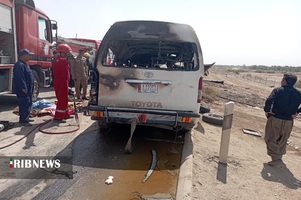 رئیس جمعیت هلال احمر گفت: بر اثر تصادف یک مینیبوس با یک ون به علت وجود کپسول گاز در داخل ون، این دو خودرو دچار انفجار میشوند که در پی آن ۱۱ نفر فوت و حدود ۳۰ نفر دیگر مصدوم شدند