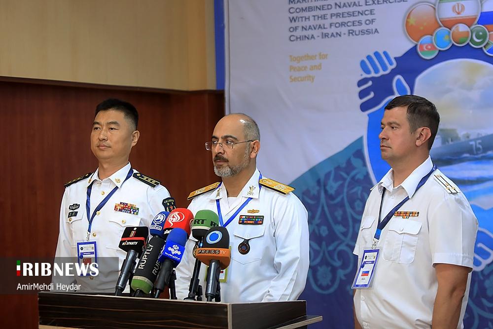 استقبال از فرماندهان ناو گروههای دریایی چین و روسیه، برای رزمایش مرکب «کمربند امنیتی دریایی ۲۰۲۴» با جمهوری اسلامی ایران و با هدف تمرین تضمین ایمنی فعالیتهای اقتصادی دریایی و تمرینات تاکتیکی متنوع در دریا، انجام میشود. ناوگانهای دریایی سه کشور در این رزمایش مرکب، تشکیل یک یگان مشترک از کشتیهای جنگی، مانورهای تاکتیکی مشترک و اجرای دستورات رزمی را تمرین میکنند. نشست خبری، رزمایش مشترک کمربند امنیت دریایی ۲۰۲۴ با حضور فرماندهان ناوگان دریایی ایران و فرماندههای ناو گروههای کشورهای چین و روسیه، برگزار شد.