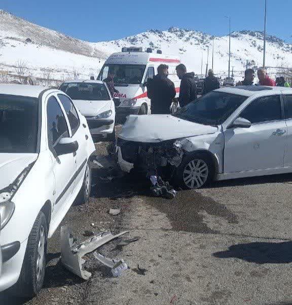 شش نفر به علت برخورد زنجیرهای خودروها در هندودر مصدوم شدند.